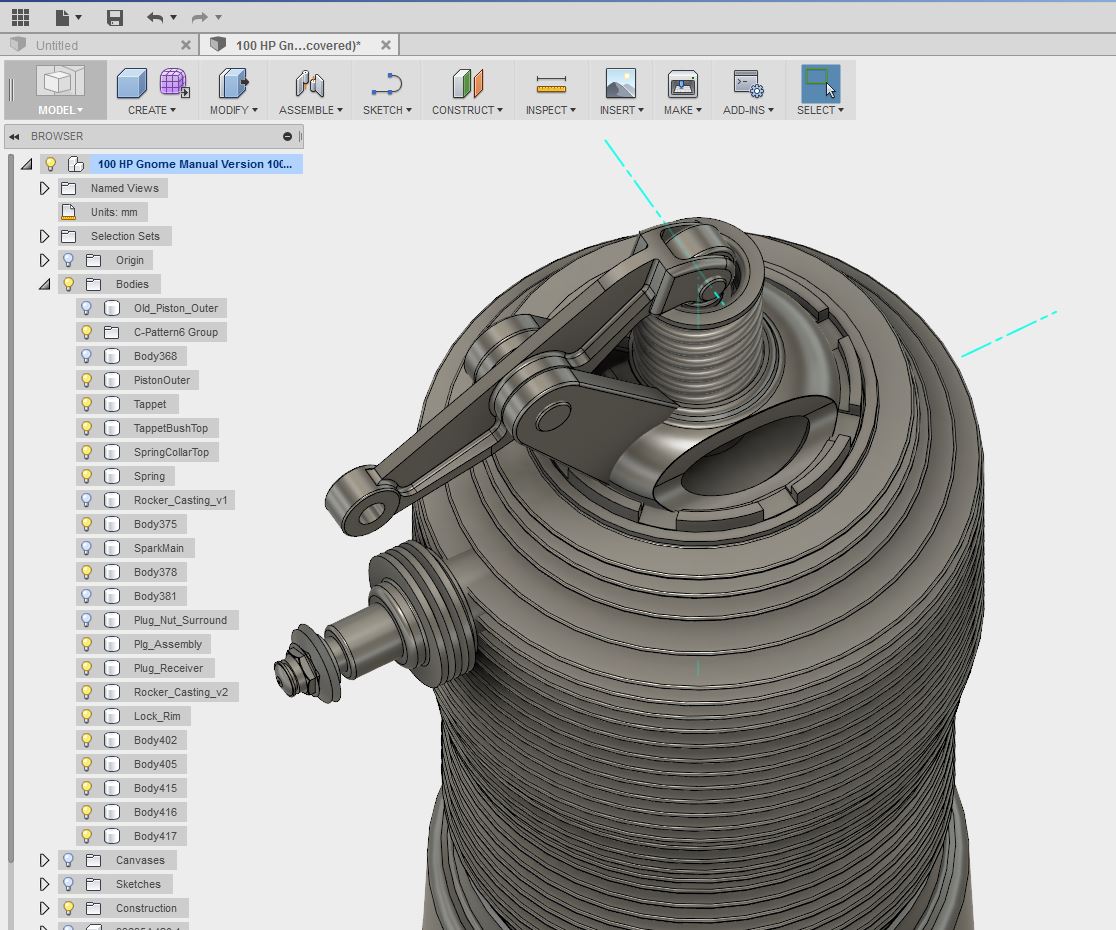 Using a combination of photos and cross sectional information, I have been able to rebuild the piston assembly, making it more representative of the original engine.