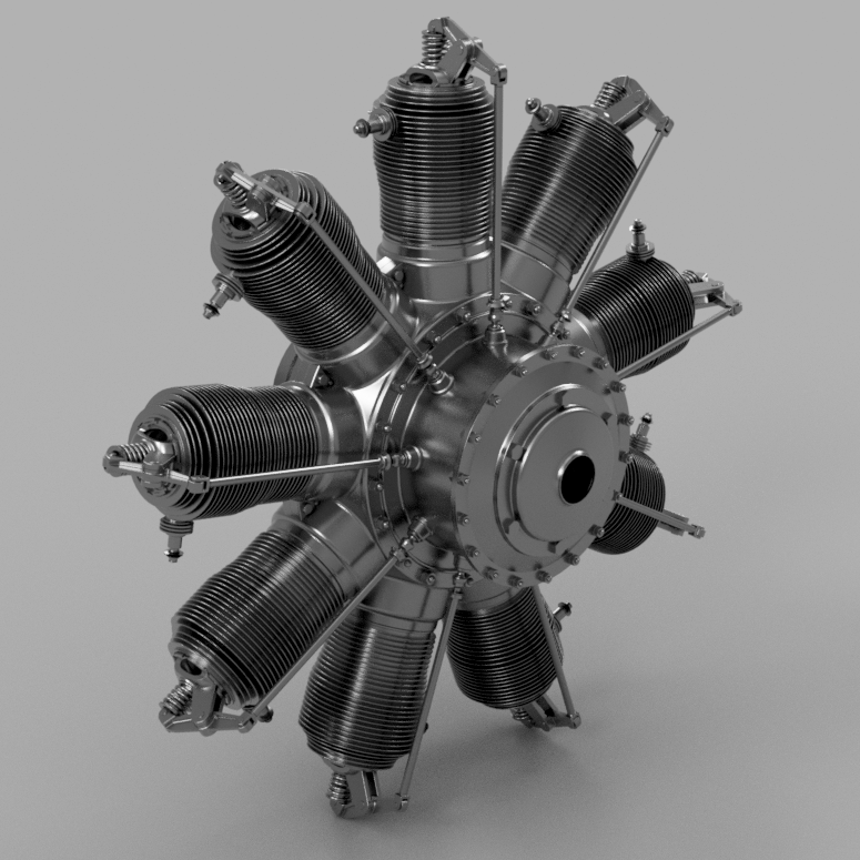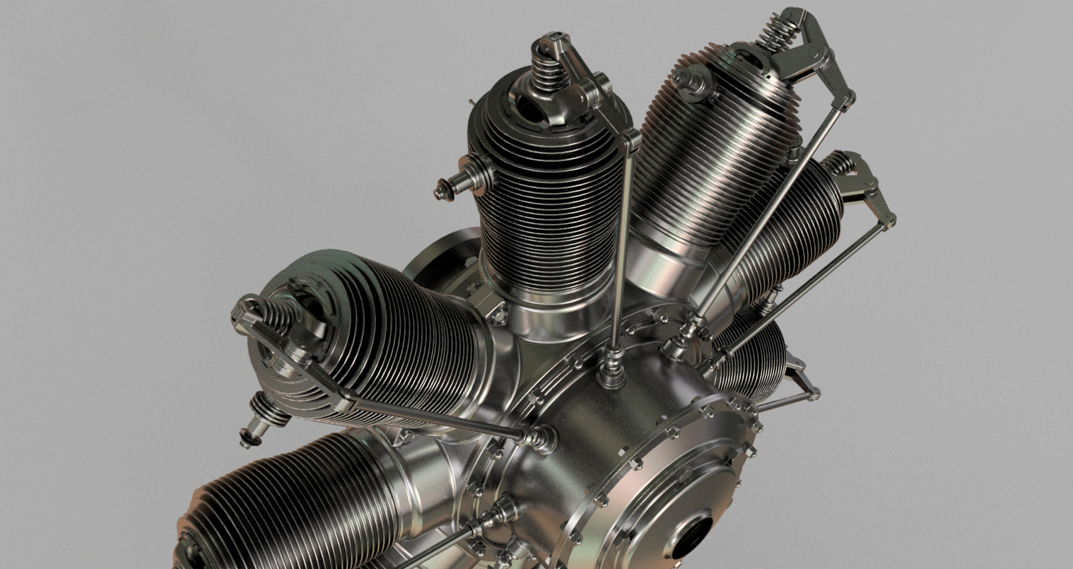 Above : Front View – Completed Gnome Monosoupape 100 HP Engine model (modelled in Autodesk’s Fusion 360)