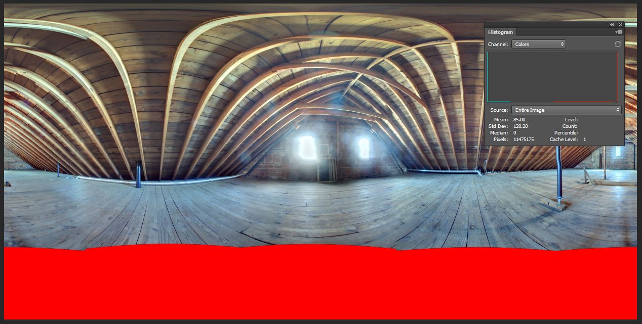 Above : Image analysis (using Photoshop) shows that of original 50 MP pixels utilized to capture this scene, 11.47 MP / 22.95% are lost to camera ‘footprint’ (shown in red).