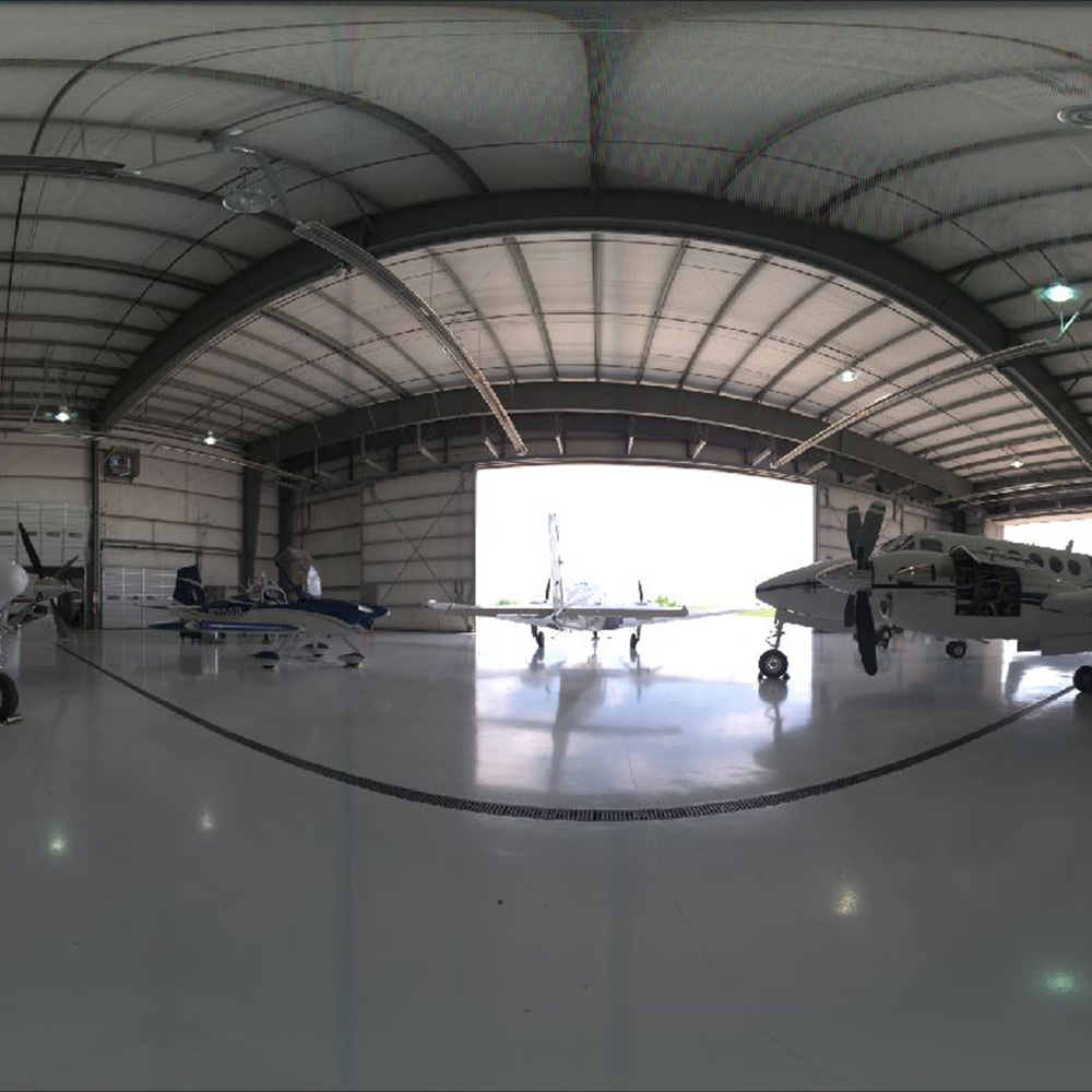 Without ‘tone-mapping’ you would not get the balanced interior view and clouds / airfield through the open hangar door.
